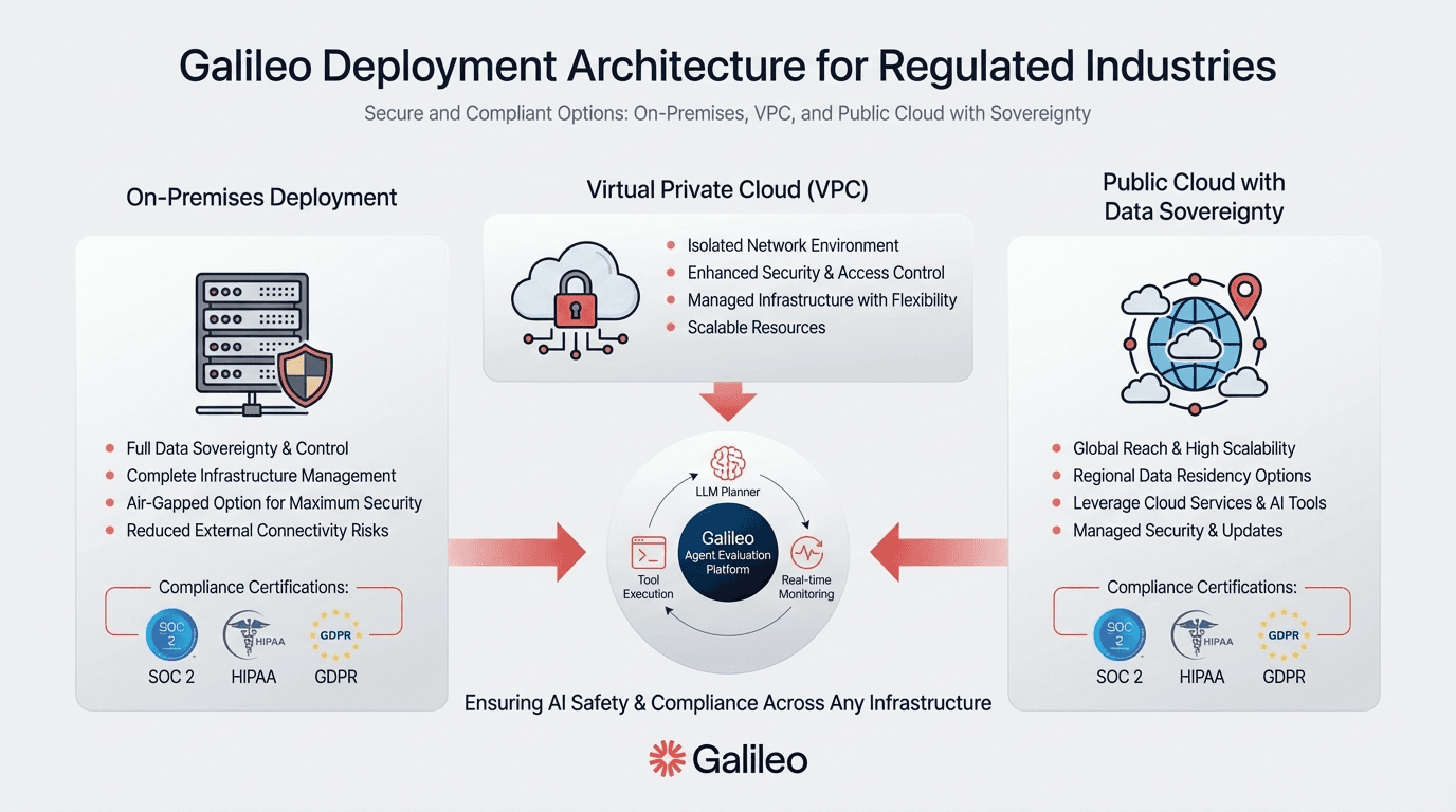 Galileo offers flexible deployment options supporting both cloud-hosted SaaS and on-premise installations, enabling Fortune 100 banks to deploy air-gapped instances while maintaining sub-200ms detection latency. Comprehensive audit trails and quantifiable grounding metrics prove essential for regulatory reporting—capabilities Galileo delivers through its Signals and end-to-end observability. Prioritize platforms with documented enterprise deployments in regulated sectors.