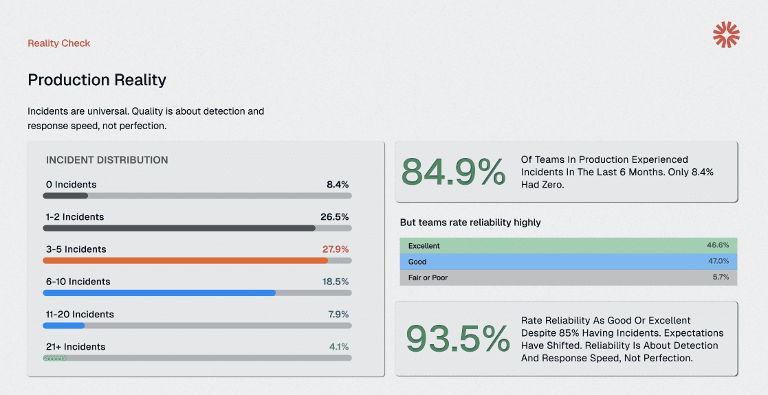 Production incidents in AI systems are universal, not exceptional. When 84.9% of teams experience incidents within six months, the conversation needs to shift from ‘if’ to ‘when’ and ‘how quickly we detect.’