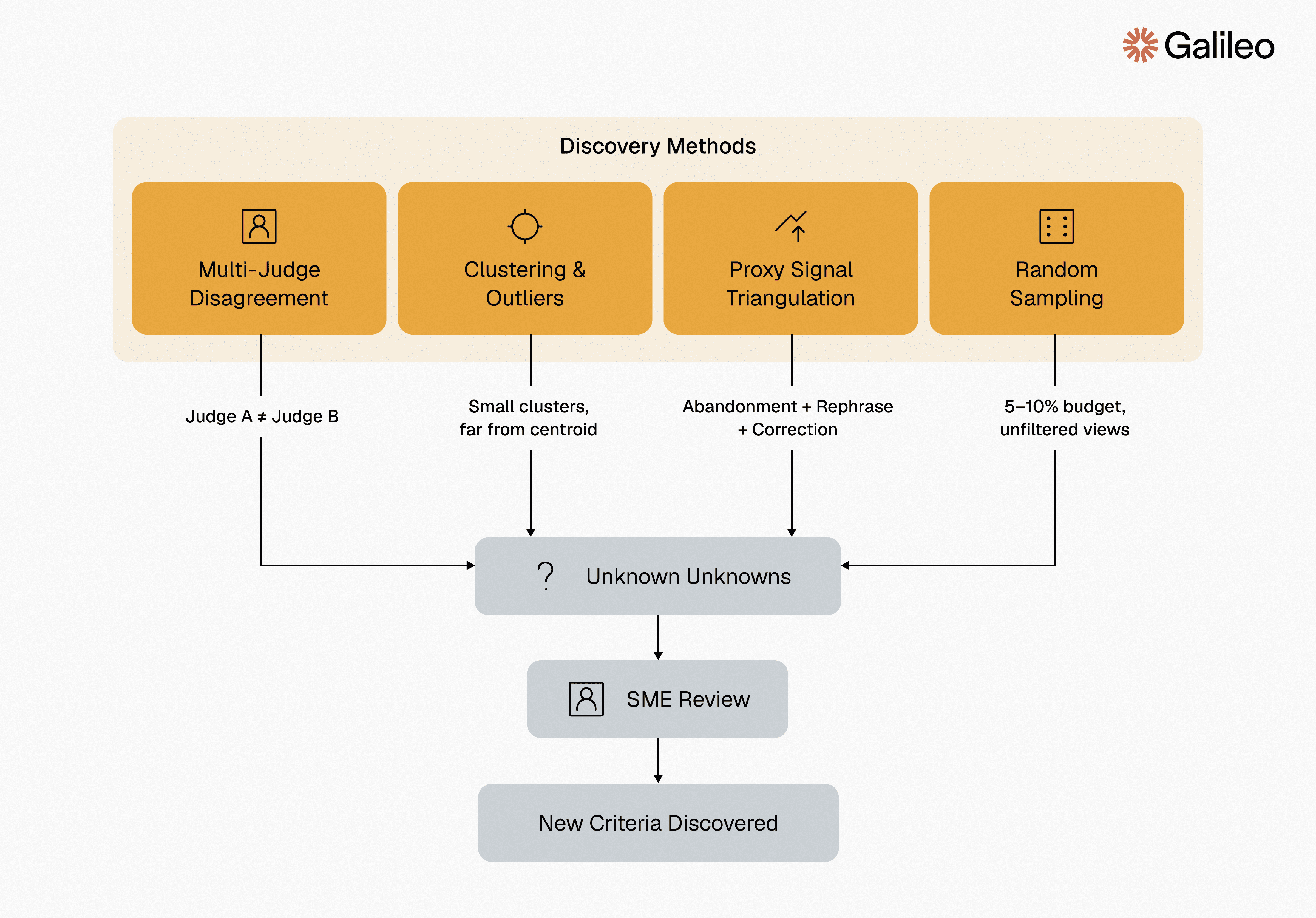 The uncomfortable reality: finding unknown unknowns requires accepting that some percentage of your evaluation budget goes toward looking at things that might be fine. That's not waste. That's the cost of a robust evaluation system.