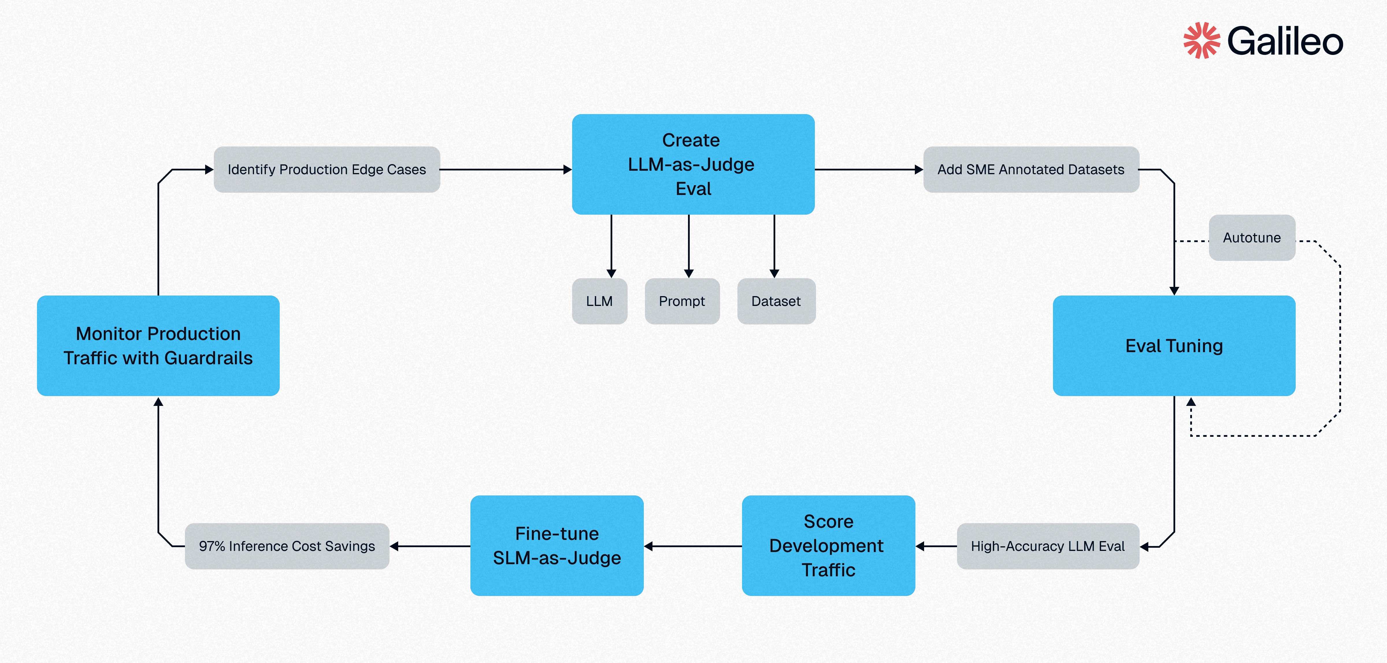 Close the loop. Monitor your guardrail trigger rates. When they spike, investigate. Feed production failures back to SME review. Identify new patterns. Retrain your SLMs. Update your guardrail thresholds. Evaluation becomes a flywheel that improves itself over time, not a checkpoint you pass once and forget.