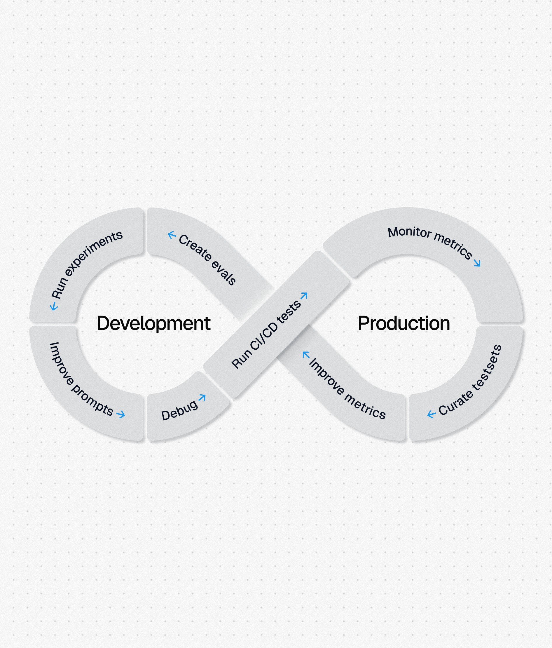 Support for the entire lifecycle of your evals, from prompt tuning to production guardrails