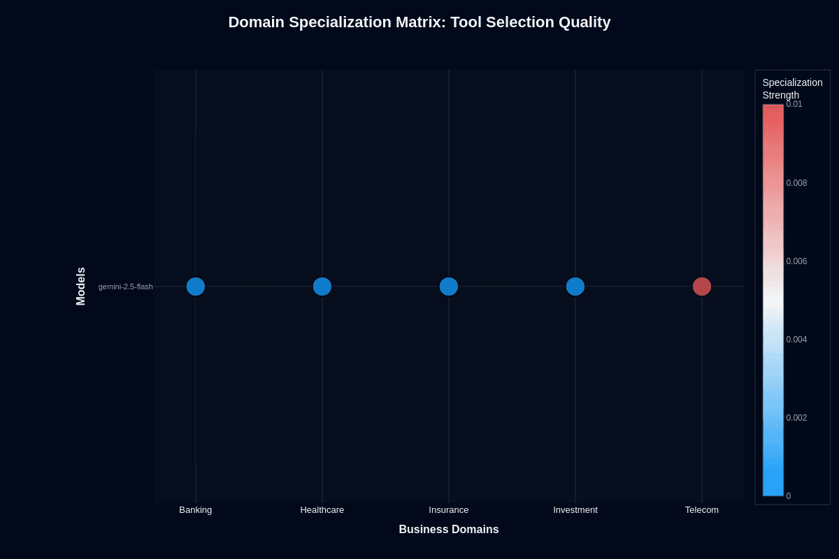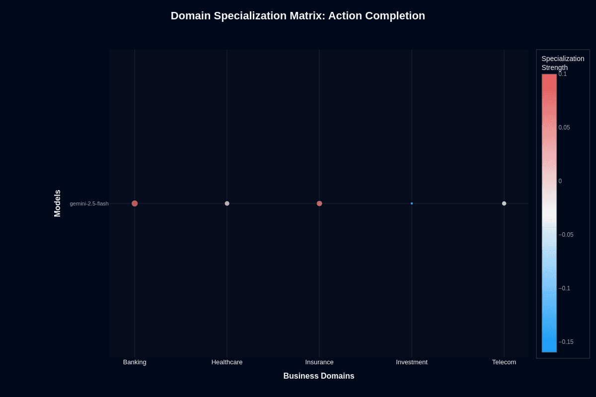 For procurement decisions, this chart quantifies risk by vertical. Banking deployments carry the lowest failure risk. Investment deployments demand guardrails, fallback models, or hybrid routing to Pro variants for complex analysis. The middle-tier domains—healthcare, insurance, telecom—require case-by-case evaluation based on your specific workflow complexity.