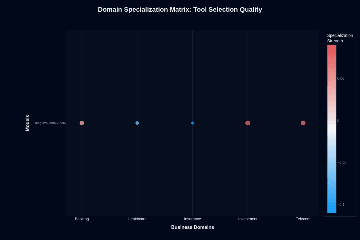 If you're working with Investment and Telecom, you might use this model effectively for tool routing with validation. Insurance struggles with compounded risks in both routing and execution. Healthcare and Banking occupy a middle ground but should approach deployment with caution.