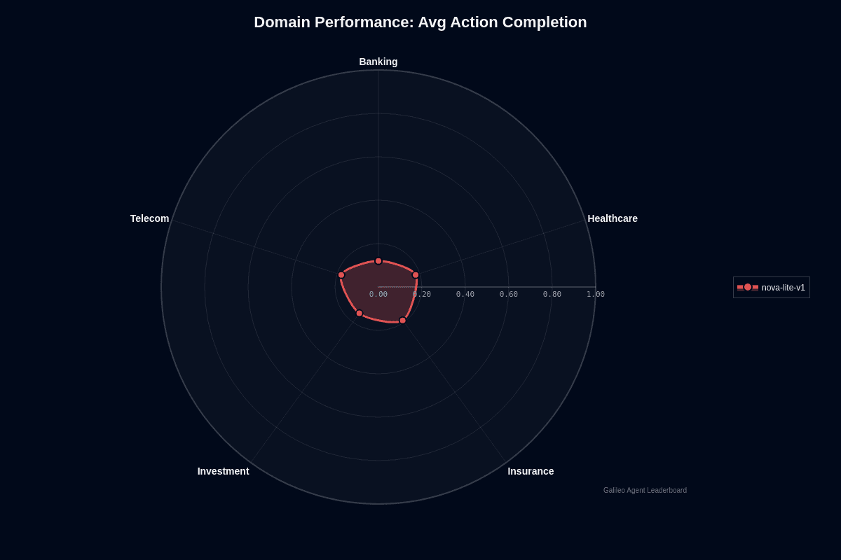 Whether processing insurance claims or bank transfers, there is no published evidence that Nova Lite fails eight times out of ten. Domain-specific prompt tuning won't rescue action workflows. Focus engineering effort on retries, guardrails, or alternative models instead.